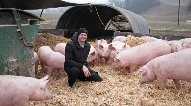 Was wie ein Provisorium aussieht, ist für Landwirt Johann Diwold ein durchdachtes Haltungssystem. Eines, das den Mastschweinen ein artgerechtes Leben ermöglichen soll und gleichzeitig wirtschaftlich funktioniert.