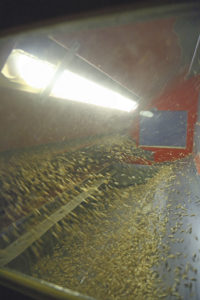 8) In der modernen Schälanlage der Saatbau im Burgenland wird der schützende Spelz schonend vom Korn getrennt.