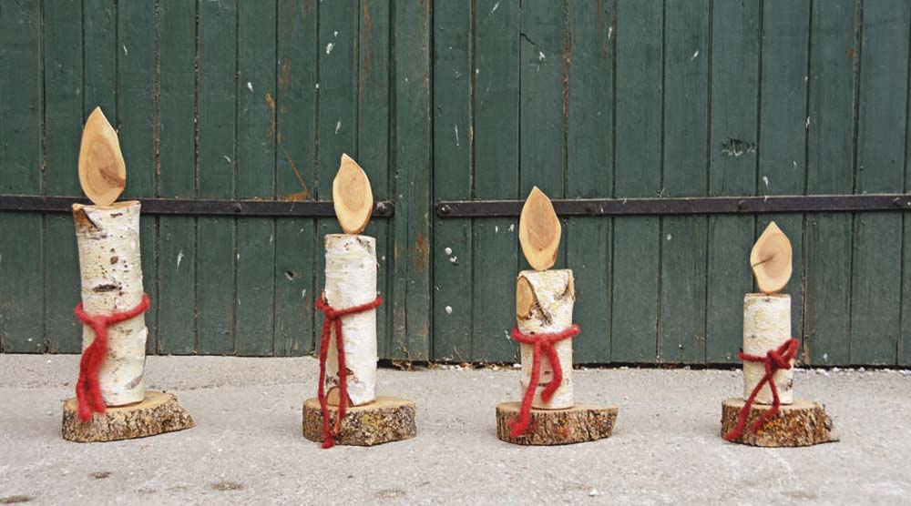 Erst eins, dann zwei, dann drei, dann vier … Diese Unikate aus Holz verkünden den Advent ganz ohne Kranz. Praktisches Detail: Sie sind im nächsten Jahr wieder verwendbar.