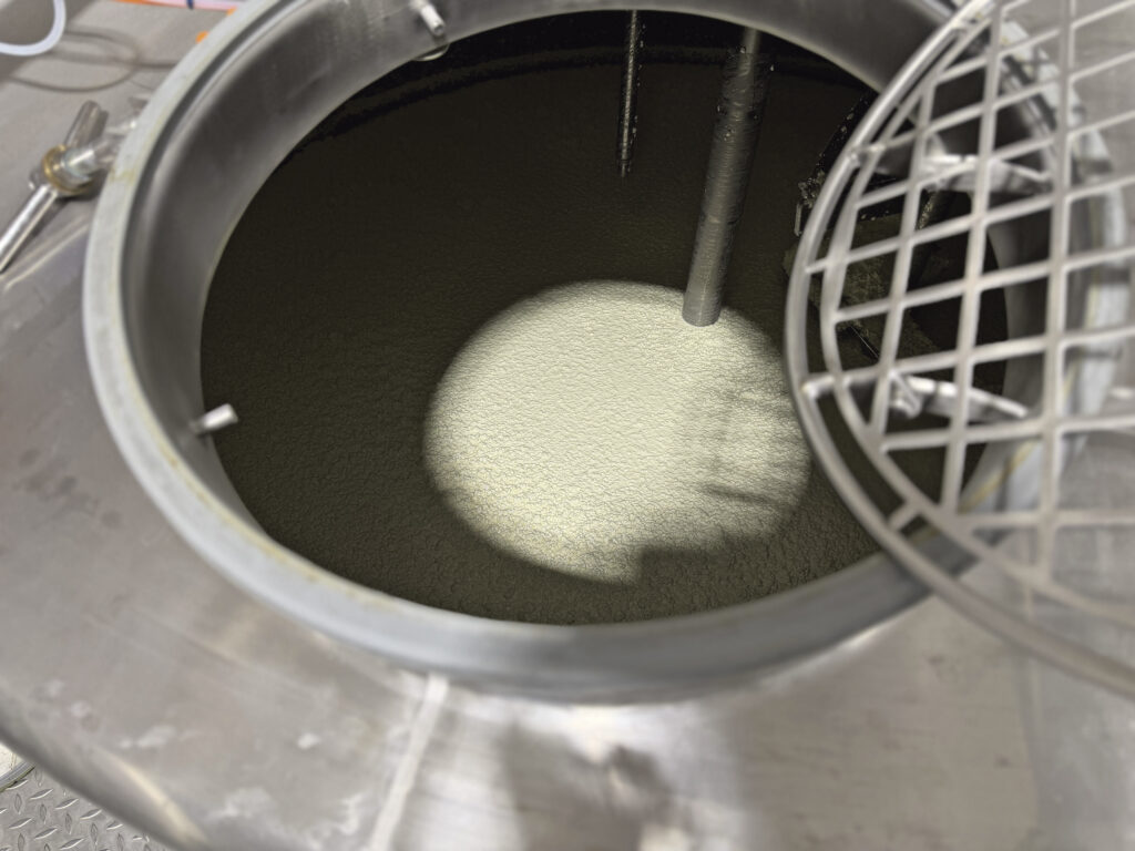2) Milchsäurebakterien werden zugegeben. Durch die Säuerung gerinnt das Milcheiweiß (Casein) und es entsteht die Gallerte.