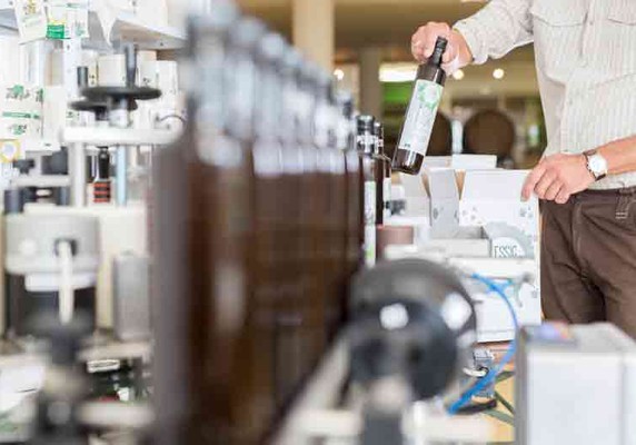 12. Maschinell wird der Essig schließlich abgefüllt und eti-kettiert. (Fotos: Frau, Köppl, Die Essigmacherinnen)