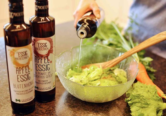 13. Apfelessig gibt durch seinen besonderen Geschmack jedem Salat eine eigene Note. Er ist ein natürliches Produkt. Die wertvollen Inhaltsstoffe der Äpfel findet man großteils auch im Apfelessig wieder. (Fotos: Frau, Köppl, Die Essigmacherinnen)
