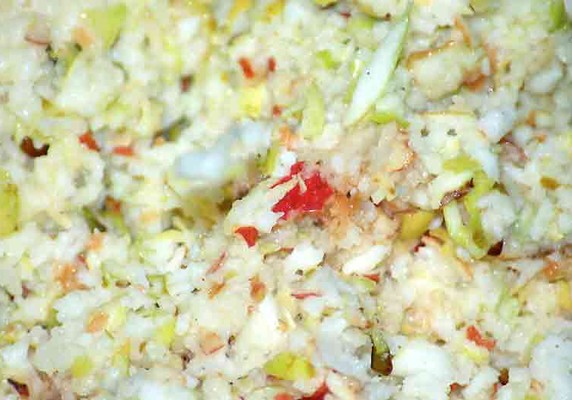 3. Das Obst wird mit einer Maschine kleingeraspelt. Man nennt es dann die Maische. (Fotos: Frau, Köppl, Die Essigmacherinnen)