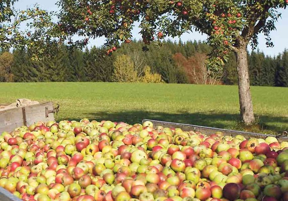 1. Die Voraussetzung für guten Essig ist qualitätsvolles Obst. Gute Witterung und Pflegemaßnahmen sind dafür entscheidend. Die Essigmacherinnen (siehe Artikel rechts) zeigen, wie wertvoller Apfelessig entsteht. (Fotos: Frau Köppl, Die Essigmacherinnen)