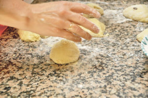 6. Jedes Teigstück so lange mit der Handfl äche schleifen, bis das Laibchen ganz glatt und fein wird.