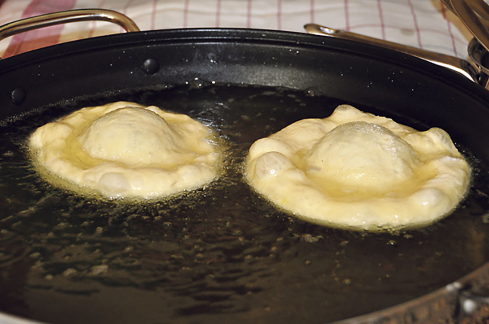 14. Bauernkrapfen können warm oder kalt, süß aber auch pikant, gegessen werden. Vor dem Servieren werden sie mit Staubzucker bestreut. Dazu schmeckt Marillenmarmelade besonders gut.